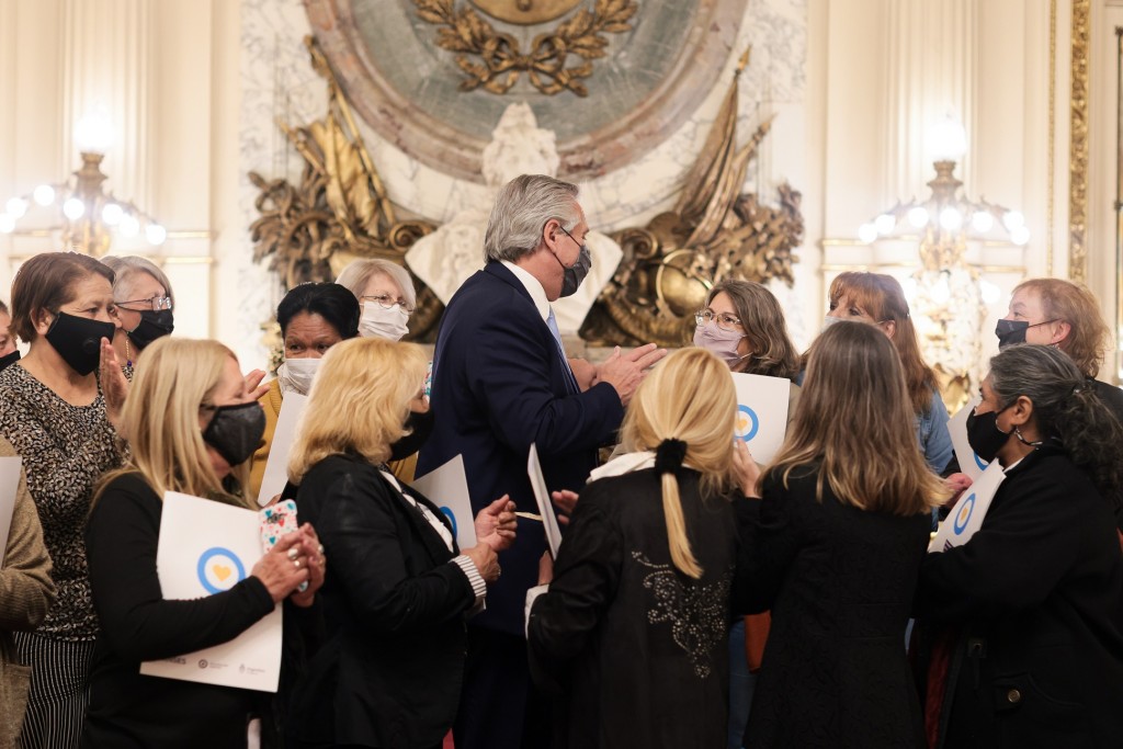 (CABA, 30.Sep.2021 / A1 Noticias) “Es un reconocimiento que el Estado les debía a las mujeres por sus tareas de cuidado, y es algo que no hemos hecho como sociedad”, les dijo el Presidente a las 29 mujeres de todo el país que hoy accedieron al beneficio de manera presencial en el Museo y que luego compartieron una recorrida por la Casa Rosada.