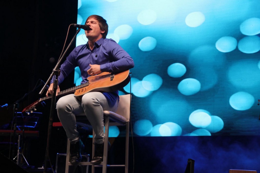 El cantante tocó en la Plaza Gral. San Martín para más de 6000 personas para festejar el aniversario del distrito. El alcalde municipal le entregó un reconocimiento a personal esencial