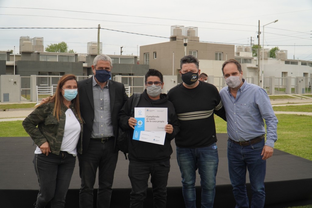 (Merlo, 12.Oct.2021 / A1 Noticias) El acto se llevó adelante en Parque San Martín donde a más de 30 familias se les adjudicaron las viviendas sorteadas mediante este programa nacional, en articulación con el Gobierno Municipal. Los hogares cuentan con agua corriente, cloacas, gas y electricidad, además de un predio recreativo para las familias.