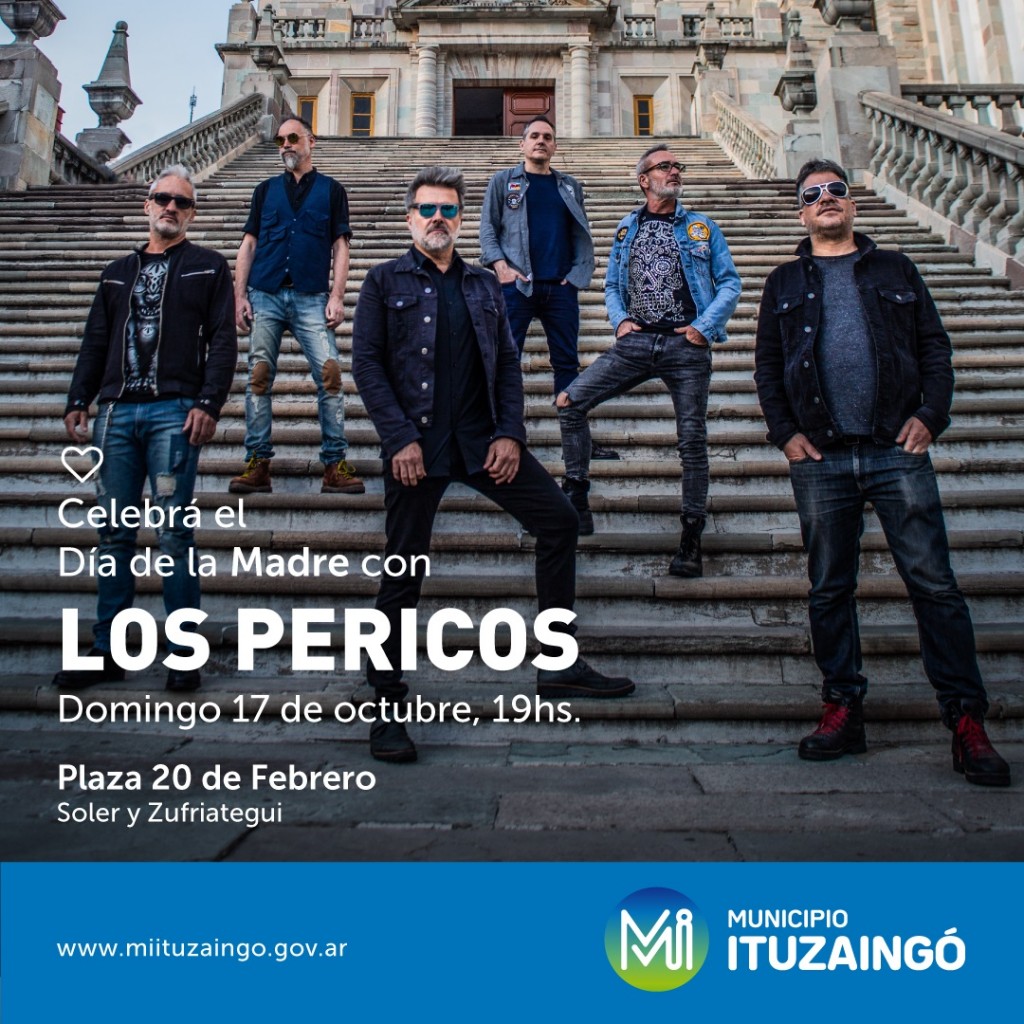 El Gobierno Municipal, a través de la Subsecretaría de Promoción Social y Políticas Culturales, invita a los vecinos y vecinas a disfrutar del recital de Los Pericos el próximo 17 de octubre a las 19hs en la Plaza 20 Febrero (Soler y Zufriategui) en el marco de los festejos por el Día de la Madre