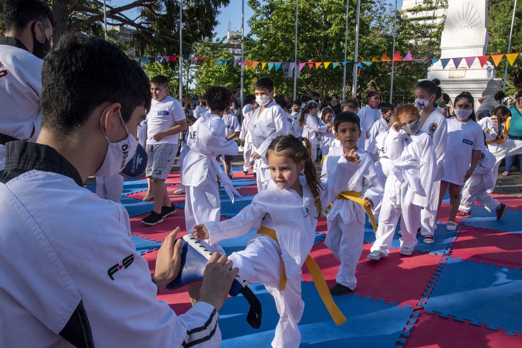 Así fue como distribuidos en estaciones deportivas ubicadas dentro de la plaza como en sus inmediaciones, hubo muestras de Lucha, Jiu jitsu, Taekwondo, Boxeo, Karate, Defensa Personal, Patín, Fútbol, Fútbol tenis, Tenis de mesa, Ajedrez, Handball, Básquet, Gimnasia para adultos mayores, Streching, Iniciación deportiva, Deportes adaptados e inclusivos, Atletismo, Tenis, Zumba, Arquería, Patín carrera y Deportes tradicionales (sapo, truco, escoba, chinchon).