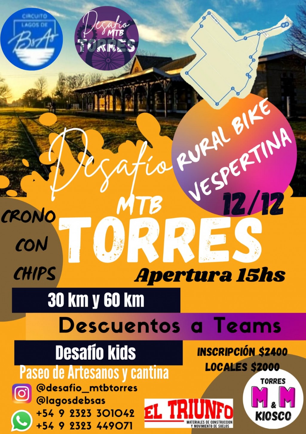 Para más información comunicarse al mail desafío.mtbtorres@gmail, al Intagram: desafio_mtbtorres, o al Facebook: Desafío MTB Torres.