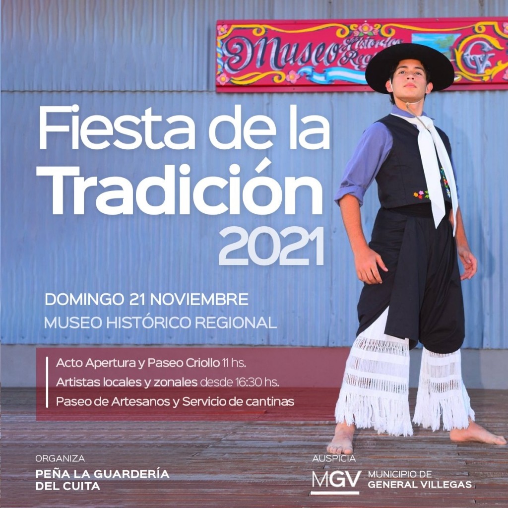 (General Villegas, 16.Nov.2021 / A1 Noticias) El Acto de Apertura se realizará a las 11 horas y luego el Paseo Criollo del que participarán agrupaciones tradicionalistas de hombres y mujeres que desfilarán con sus caballos y carruajes desde el Parque San Martín por Mitre, Moreno y finalizando en el Museo Histórico Regional.