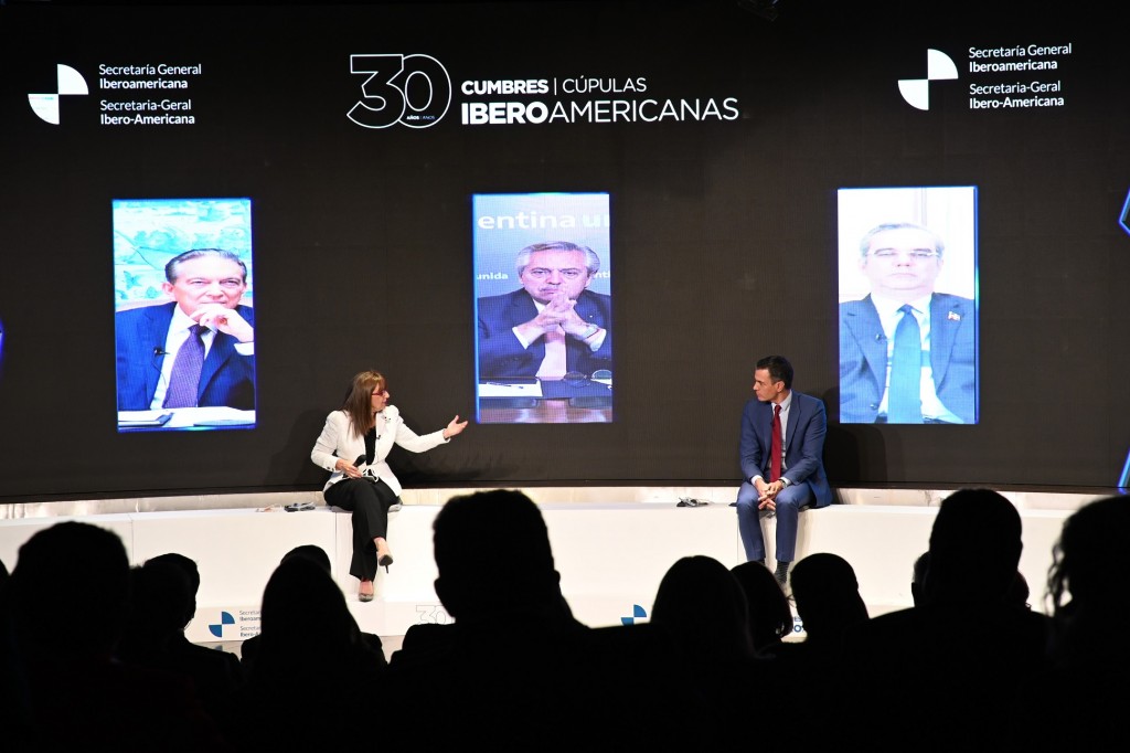 También intervinieron desde la Casa de América de la ciudad de Madrid como moderadores los ex secretarios generales iberoamericanos, Enrique Iglesias y Rebeca Grynspan.
