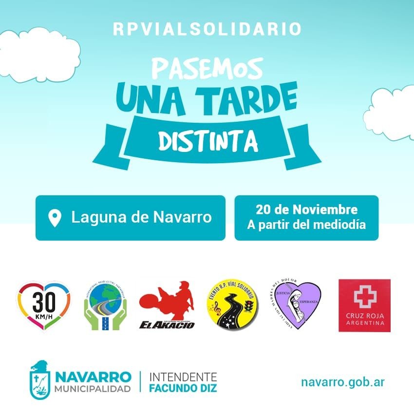 (Navarro, 17.Nov.2021 / A1 Noticias)  Habrá simuladores de conducción, juegos educativos, sorteos y más. La actividad, organizada por la Municipalidad de Navarro y RP Vial Solidario, contará con la colaboración de la Cruz Roja.