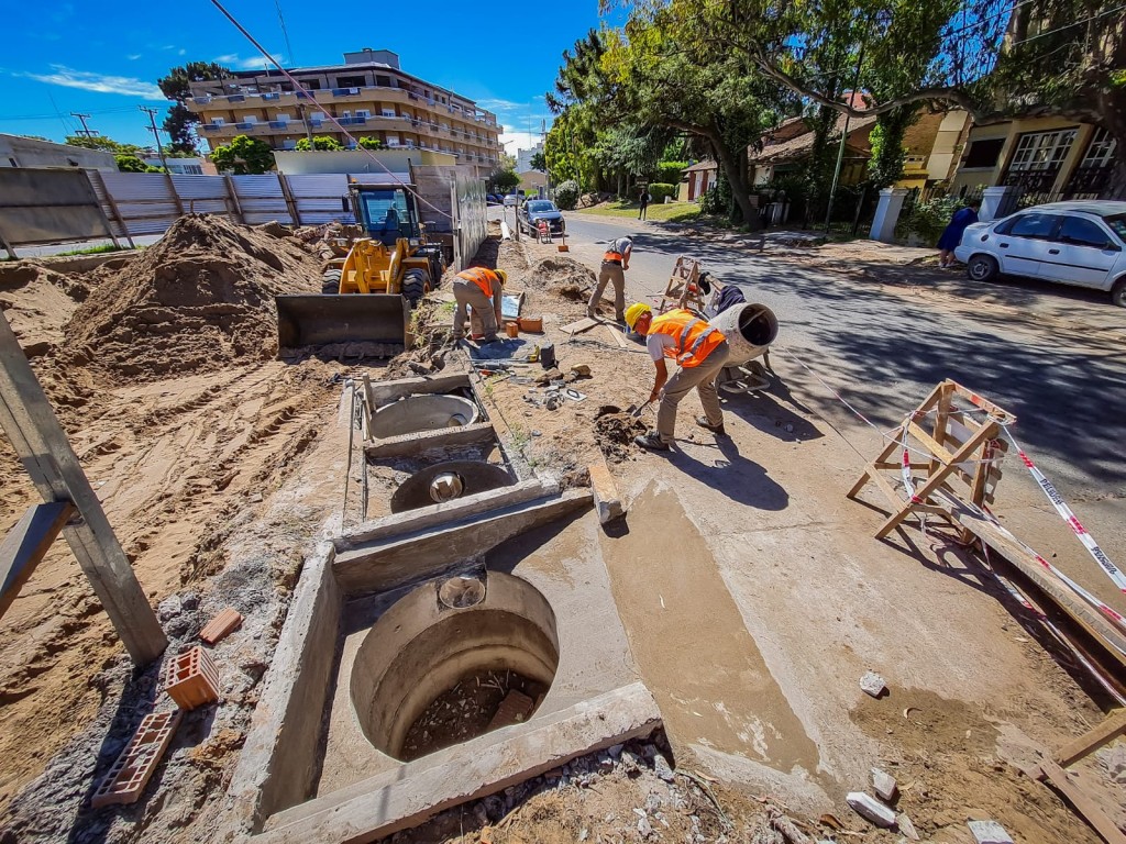 (Pinamar, 19.Nov.2021 / A1 Noticias)   Los trabajos de resolución hidráulica apuntan a aliviar la cuenca principal, ubicada en la calle Del Valle Fértil, permitiendo captar gran porcentaje de las precipitaciones.