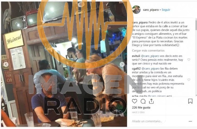 En su cuenta personal de Instagram, Píparo compartió imagenes de ella en el comercio y junto al niño. Rápidamente, los usuarios de la Red Social salieron a responderle, “qué pena que tengan que ir a comer a otro lugar que no sea su hogar. Ojalá eso los haga pensar qué está pasando y qué están haciendo para que las cosas sean así", se indignó Araceli Etchepare.