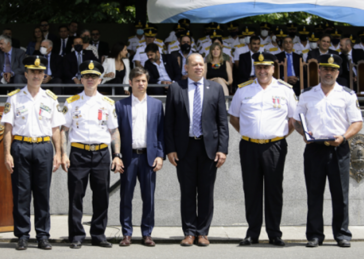 El gobernador Axel Kicillof encabezó junto al ministro de Seguridad, Sergio Berni, el acto en conmemoración del bicentenario de la creación de la Policía de la Provincia de Buenos Aires. Fue en la Escuela Juan Vucetich, ubicada en el municipio de Berazategui, donde también se tomó juramento de fidelidad a la función policial a tres mil nuevos oficiales