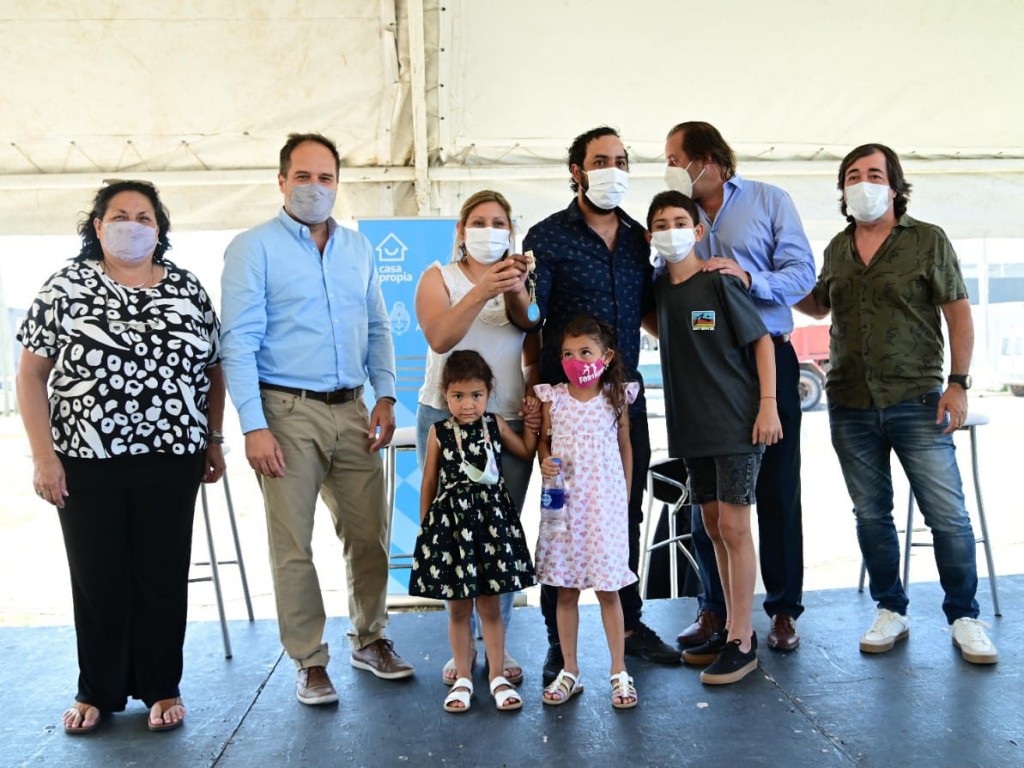 (Merlo, 30.Dic.2021 / A1 Noticias) Durante la jornada, se adjudicaron viviendas de ProcreAR II a los beneficiarios que resultaron sorteados a través del programa.Los hogares cuentan con agua corriente, cloacas, gas y electricidad, además de un predio recreativo para las familias. También se dieron créditos a tasa cero del Plan Casa Propia, para la construcción de hogares.