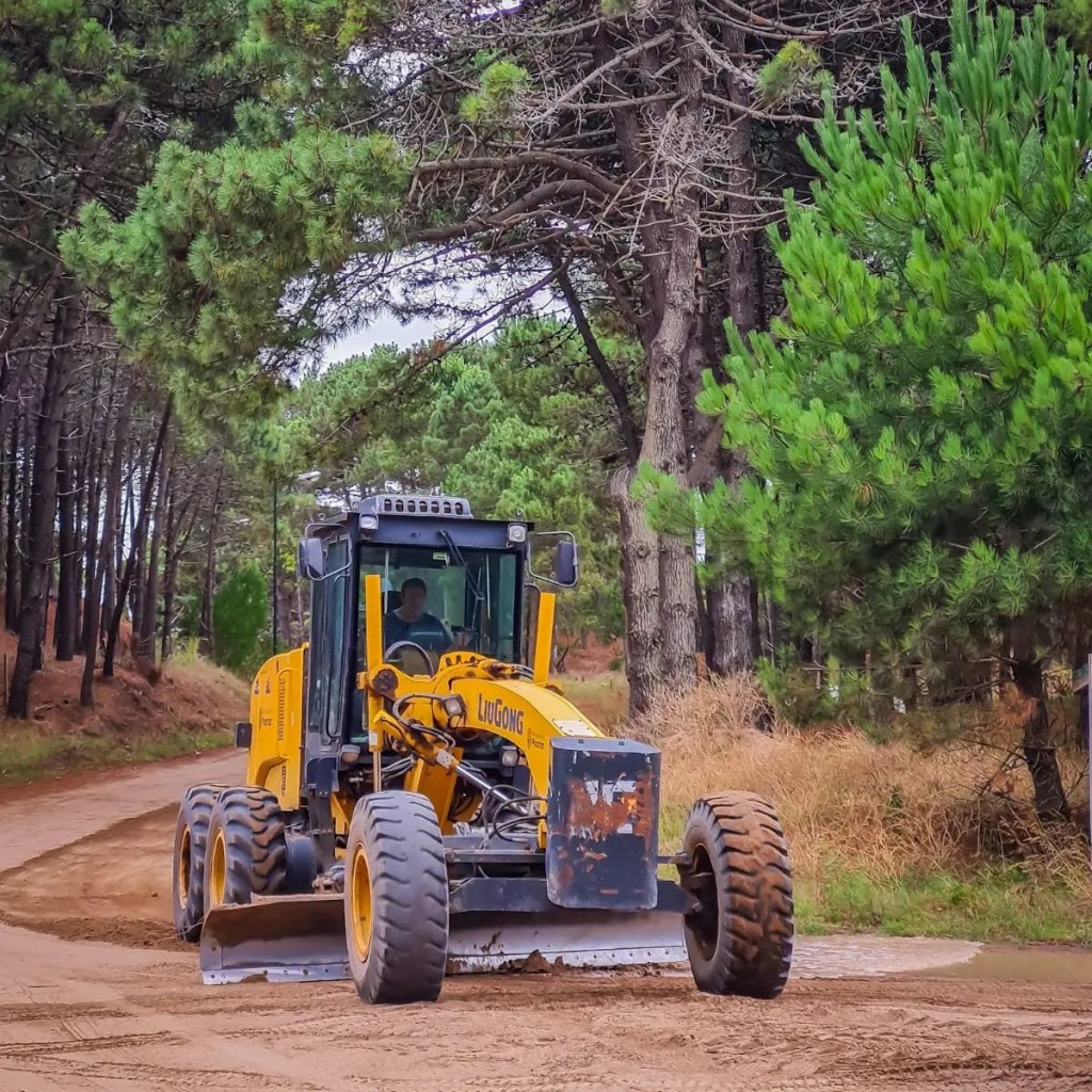 Después de la lluvia, el equipo de Servicios Urbanos trabaja con las motoniveladoras en las calles de Pinamar