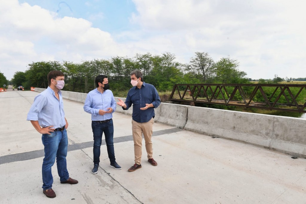 El Intendente Leonardo Boto junto a su par de Mercedes, Juan Ignacio Ustarroz, y el Ministro de Infraestructura de la Provincia, Leonardo Nardini, visitaron este lunes las obras del nuevo puente de la localidad de Olivera, que quedó formalmente habilitado al tránsito vehicular