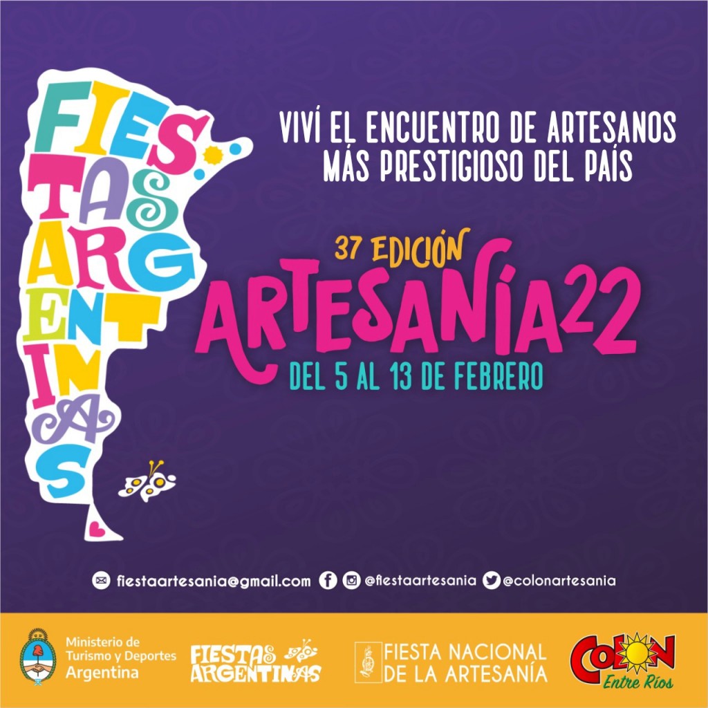 (Colón (ER), 31.Ene.2022) Un total de 44 propuestas artísticas, más de centenar de artistas sobre dos escenarios a lo largo de nueve noches, completan la grilla de la Fiesta nacional de la Artesanía 2022 de Colón. En los últimos días se confirmaron todas las actuaciones para la 37ma edición de la Fiesta colonense que ya está en su cuenta regresiva y se desarrollará del 5 al 13 de febrero.