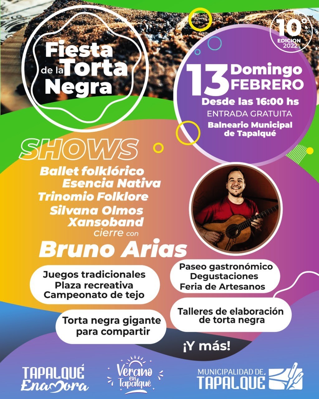 Este domingo 13 de febrero desde las 15 hs en el Balneario Municipal llega uno de los eventos populares más esperados para los tapalquenses y para la región: ¡la #FiestaDeLaTortaNegra!