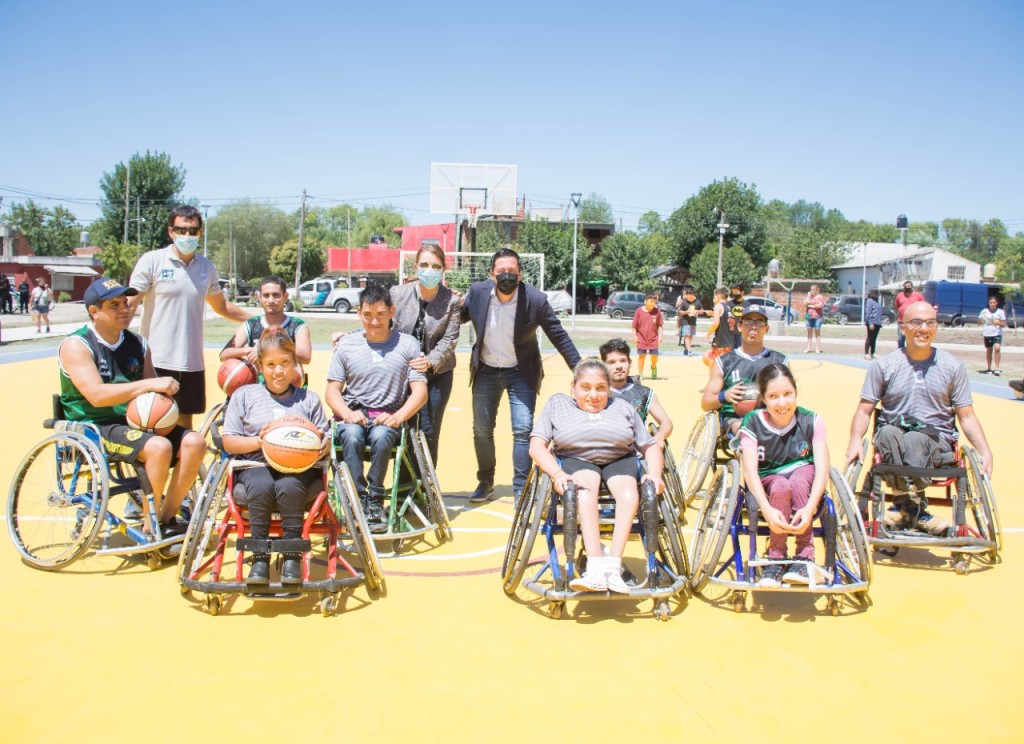 Como corolario de la ceremonia, los integrantes de la Escuela Municipal de Básquet Adaptado, a cargo del Prof. César Martínez, realizaron una exhibición en la nueva cancha multideportes.