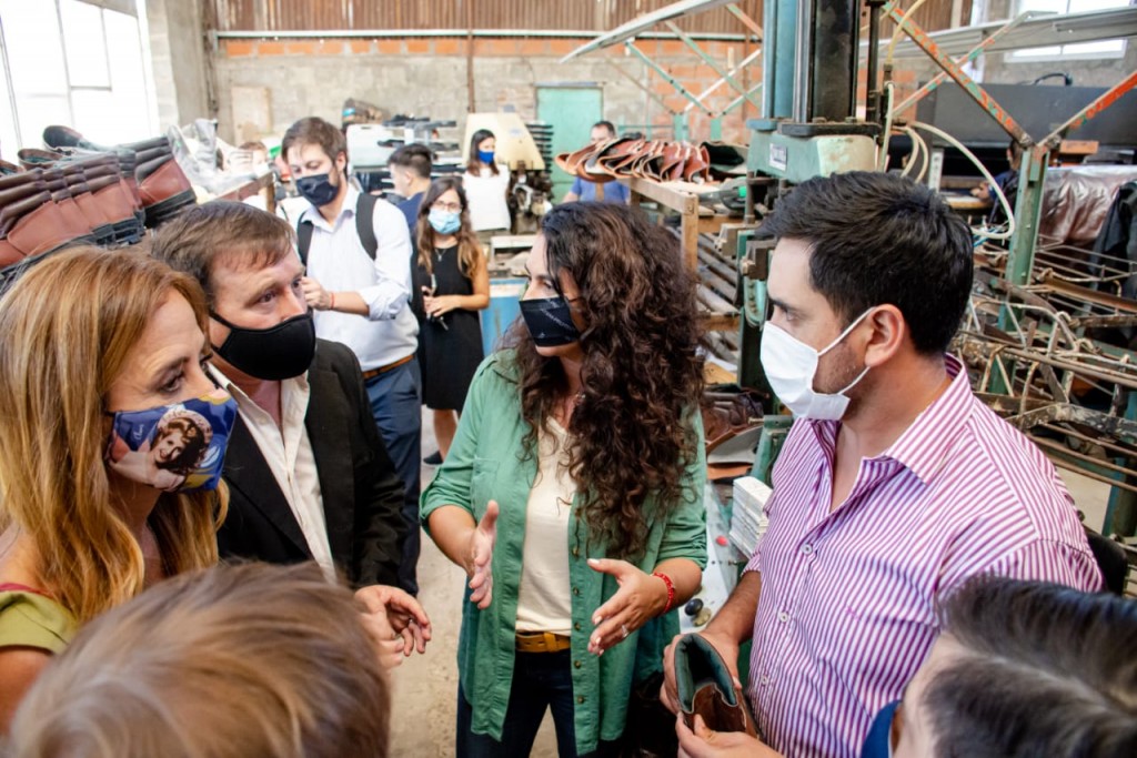 Tras la firma, Merquel, Villagrán y Tolosa Paz recorrieron junto a funcionarios del equipo municipal el predio de la firma “Calzados Olmos”, una pyme familiar con más de 30 años de trayectoria en el sector, que ahora logró reposicionarse en esa plaza recuperando sus niveles más altos de producción y generando empleo para su ciudad y la región.