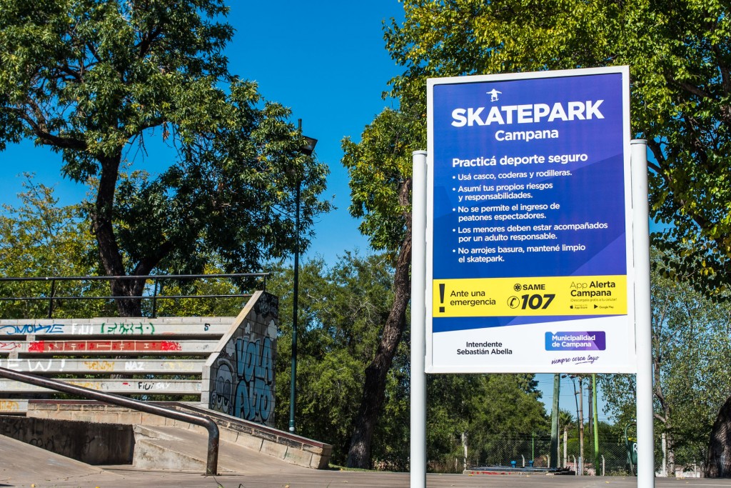 De cara al primer torneo de skate, el Municipio colocó nueva cartelería sobre el espacio público que, además de identificarlo, brinda sugerencias para practicar el deporte de forma segura tales como la importancia de usar casco, codera y rodilleras, entre otras