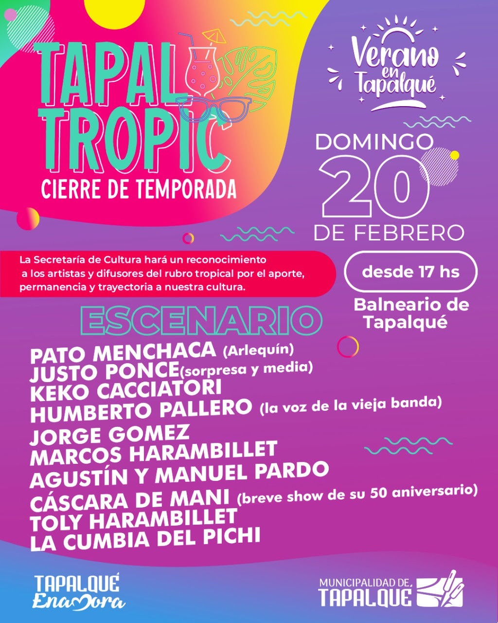 (Tapalqué, 18.Feb.2022)   Durante el evento la Secretaría de Cultura hará un reconocimiento a los artistas y difusores del rubro tropical por el aporte a nuestra cultura, permanencia y trayectoria.