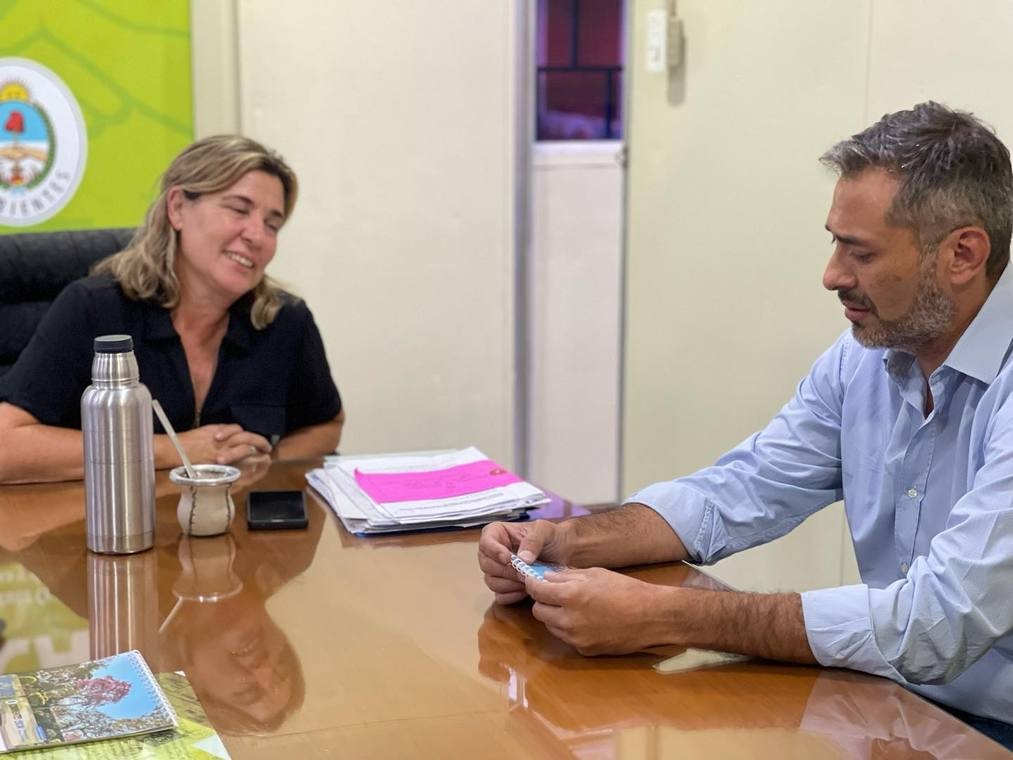 (Corrientes, 25.Feb.2022) En su paso por Corrientes, Azulay se reunió con la administradora general del Instituto Correntino del Agua y del Ambiente (ICAA) Alejandra Eliciri, quienes dialogaron sobre las dificultades en la zonas afectadas por los incendios y el trabajo a planificar de recuperación de los ecosistemas.
