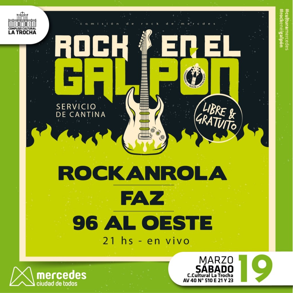 El ciclo “Rock en el Galpón” conformado por grupos de jóvenes mercedinos autogestionados y que impulsa el Municipio de Mercedes, vuelve en este 2022. Este sábado 19 de marzo en el Complejo Cultural La Trocha, a partir de las 21:00 horas, la ciudad podrá disfrutar de 3 bandas en vivo de manera libre y gratuita
