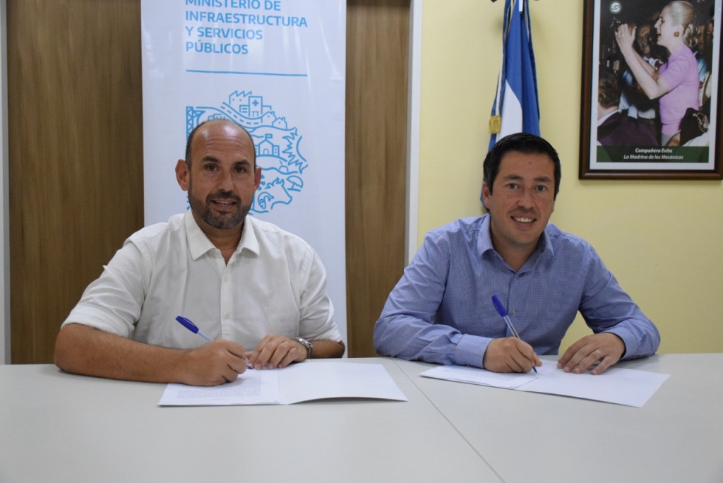 El jefe distrital, Esteban Sanzio y el Ministro Leonardo Nardini concretaron la firma de un convenio para la compra de material para el mejoramiento de la red vial urbana de Baradero “para seguir progresando en la ciudad” manifestó el ministro