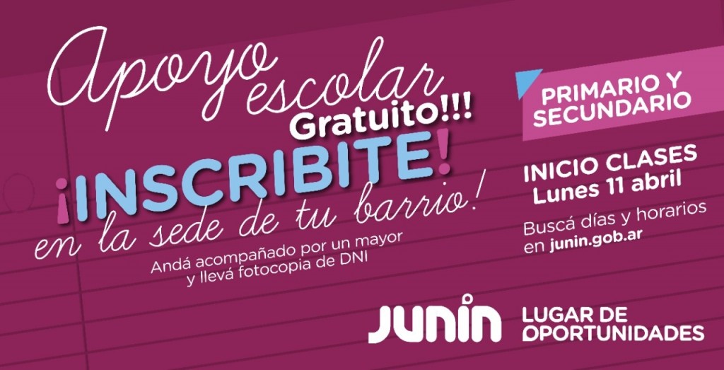 Junín: El Municipio invita a la comunidad a inscribirse al programa de apoyo escolar para nivel primario y secundario