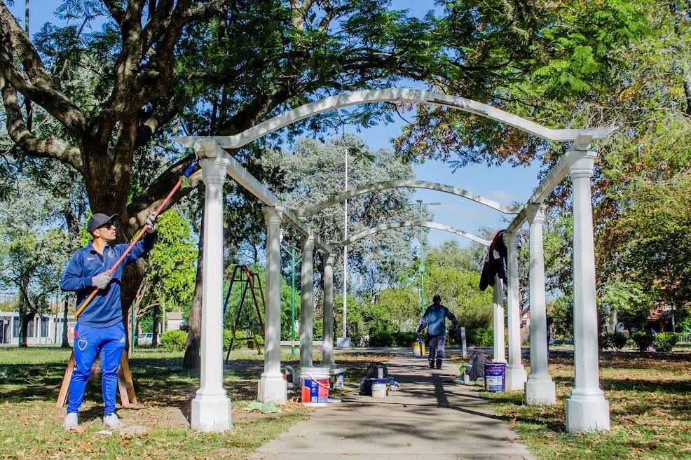 En el barrio Ariel del Plata también se llevó adelante la restauración de la pintura de la pérgola.