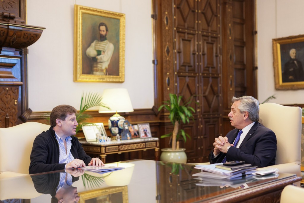 El Presidente Alberto Fernández mantuvo una reunión de trabajo con el gobernador de Tierra del Fuego, Gustavo Melella, con quien analizó el impacto positivo de la prórroga por 10 años de la concesión para la exploración y explotación hidrocarburífera sobre la Cuenca Marina Austral y la aprobación de un plan de inversiones por 700 millones de dólares
