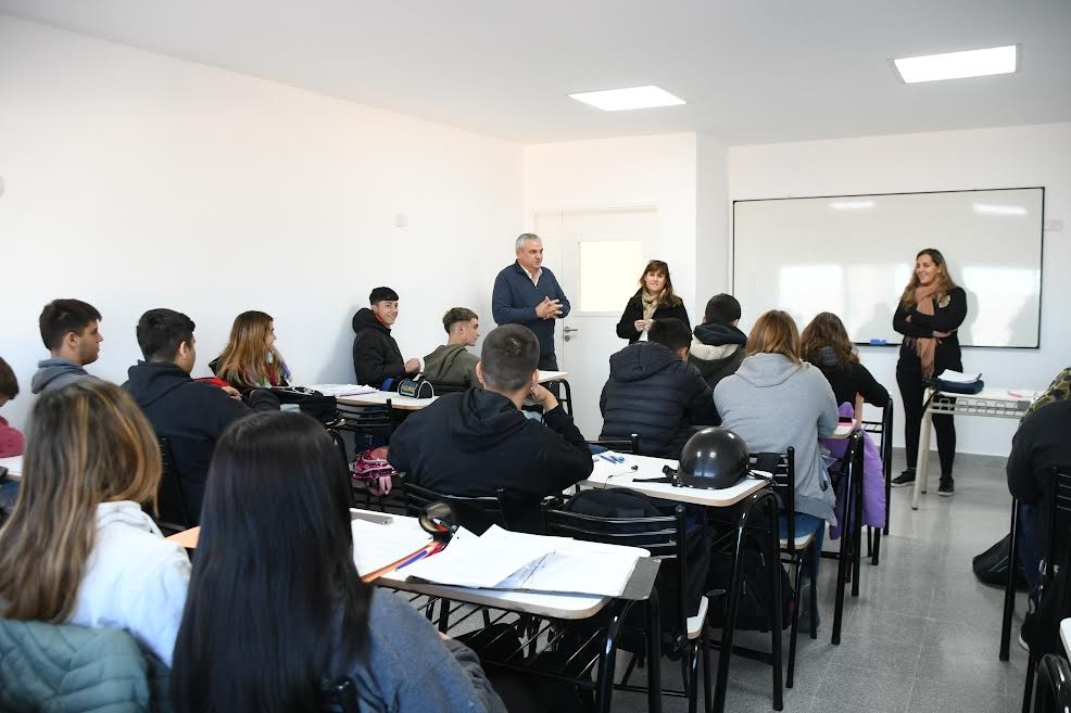 Tras el acto de inauguración, el mandatario local, Ing. Juan Miguel Nosetti, se acercó ayer a la Escuela Secundaria N°2 para saludar a los alumnos en su primer día de clases en las nuevas instalaciones
