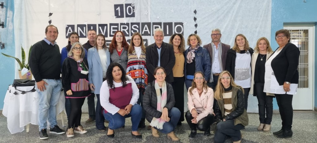“En estos diez años ocurrieron muchas cosas; egresaron cien alumnos, ingresó personal nuevo, algunos se jubilaron y nos tocaron despedidas, hubo cambios de gobierno, de gestión, de directivos, atravesamos una pandemia, tomamos distancia, usamos tapabocas, pero la escuela siguió en pie, esta escuela que abraza, que contiene y se mantiene con los brazos abiertos para todos. Día a día trabajamos para lograr calidad estatal en un modelo de gestión pública democrática e inclusiva”, expresó al inicio la Directora de la institución, Norina López.