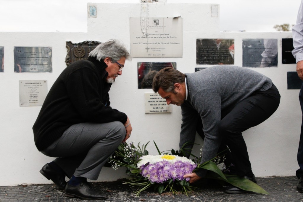 Finalmente, con un minuto de silencio, Achával y los ex combatientes realizaron una ofrenda floral en la cruz mayor del Cenotafio.