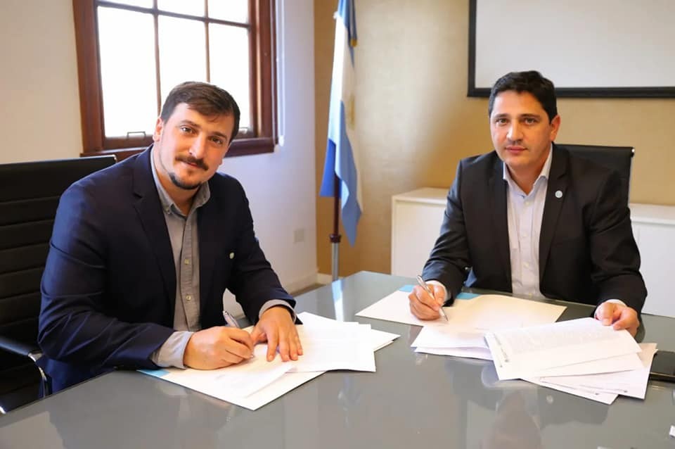 (Avellaneda, 24.May.2022 / A1 Noticias) El intendente de Avellaneda, Alejo Chornobroff, junto al titular de la Administración de Infraestructuras Ferroviarias Sociedad del Estado, Martin Marinucci, sellaron el convenio que permitirá avanzar en la construcción de un nuevo paso bajo nivel en la ciudad.