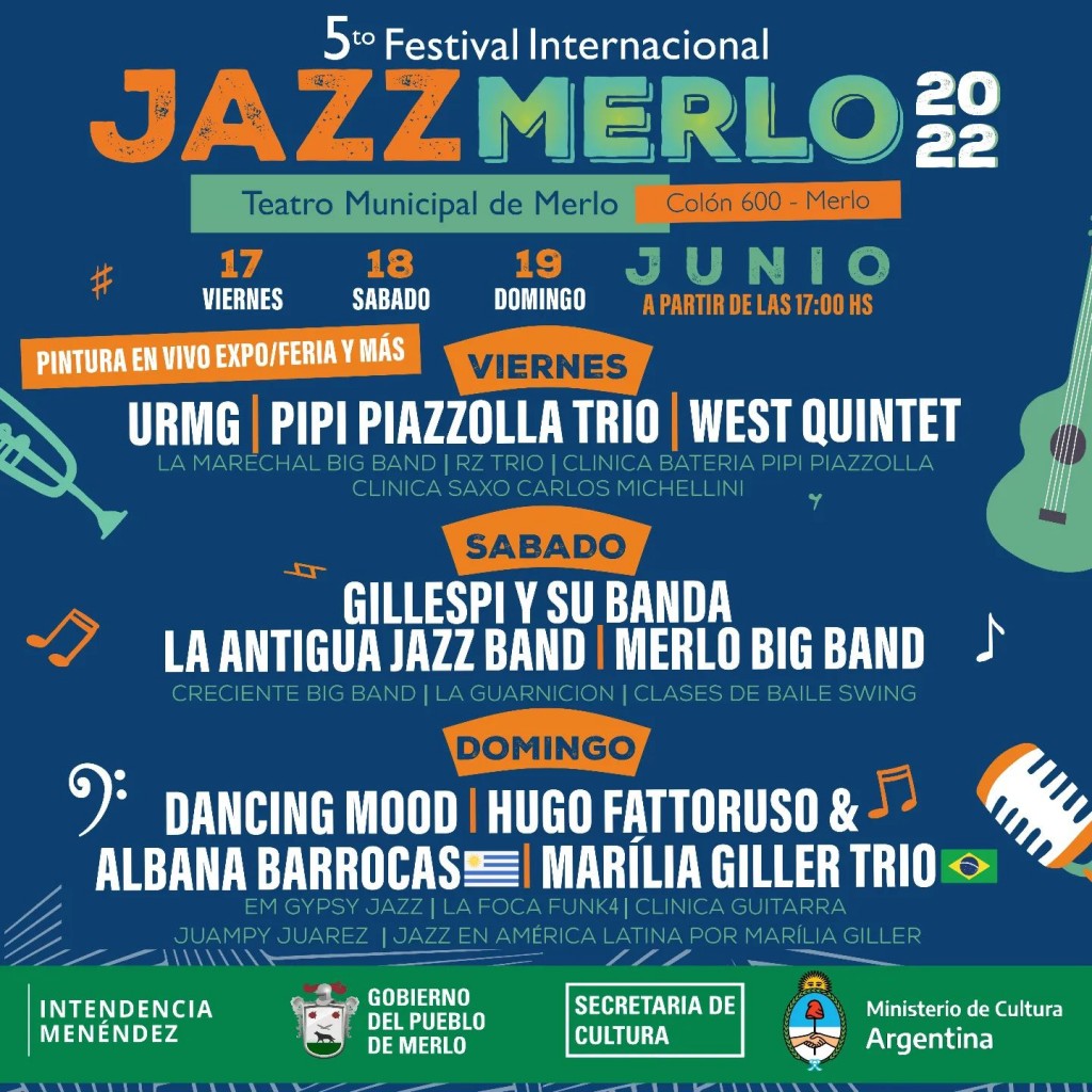 El próximo viernes 17, sábado 18 y domingo 19 de junio y se llevara a cabo el 5to Festival Internacional de Jazz que tendrá lugar en el Teatro Municipal de Merlo. Sera libre y gratuito