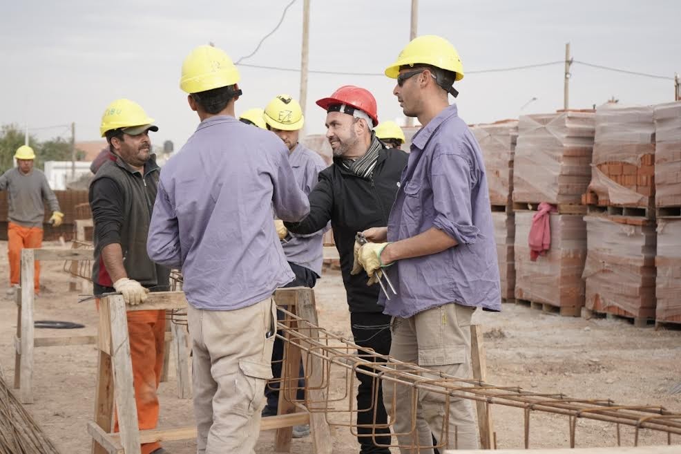 “Seguimos brindando soluciones concretas a la problemática habitacional” expresó el intendente Esteban Sanzio, que recorrió los primeros trabajos de levantamiento de paredes del desarrollo urbanístico que contará con viviendas dúplex, tríplex y multifamiliar.
