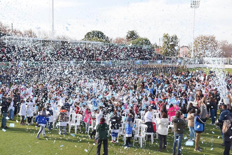 En un Estadio Carlos Alberto Sacaan colmado de alegría y orgullo, las familias ituzainguenses acompañaron a los y las más de 2 mil estudiantes y Oficiales del Ejército que se dieron cita en el estadio del Club Atlético Ituzaingó para participar de la Promesa y Jura a la Bandera 2022