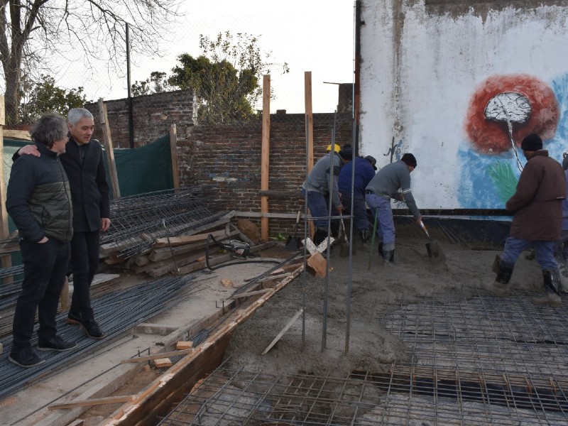 El Intendente de Berisso Fabián Cagliardi recorrió las obras de ampliación de la Escuela Secundaria Básica N° 8 de calle 26 y 172, la cual se encuentra en la Etapa II que avanza en el hormigoneado de las bases y la platea para la construcción de 8 aulas