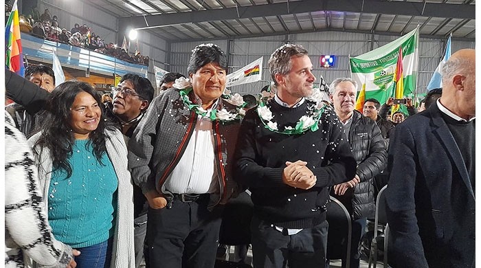 El expresidente de Bolivia, Evo Morales, se reencontró con la comunidad boliviana de Pilar y la región, en un acto organizado en el Club Municipal Diego Armando Maradona, de Luis Lagomarsino