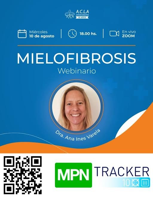 Para conocer más sobre la mielofibrosis, el miércoles 10 de agosto a las 18 horas, la Dra. Ana Inés Varela brindará una charla gratuita sobre mielofibrosis. Esta actividad gratuita vía ZOOM es organizada por la Asociación Civil Linfomas, Mielofibrosis y Mielodisplasias de Argentina (ACLA) y está destinada a pacientes, sus familiares y allegados, profesionales de la salud y todos aquellos interesados. No requiere inscripción previa: ID: 850 0192 4401 – Clave: ACLA.