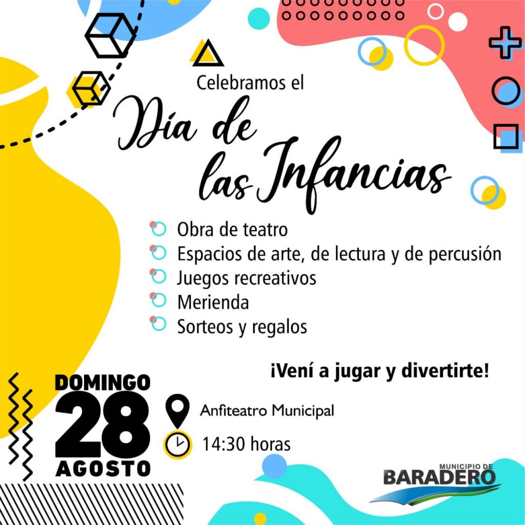Este domingo 28 de agosto desde las 14:30 horas en el predio del Anfiteatro Municipal, se llevará adelante la celebración del Día de las Infancias con distintas propuestas para disfrutar con amistades y en familia