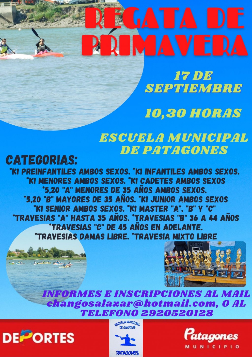 Se viene una nueva Regata de la Escuela Municipal de Canotaje de Patagones el sábado 17 de septiembre a partir de las 10.30 horas, en un sector bollado en inmediaciones de la Escuela Municipal
