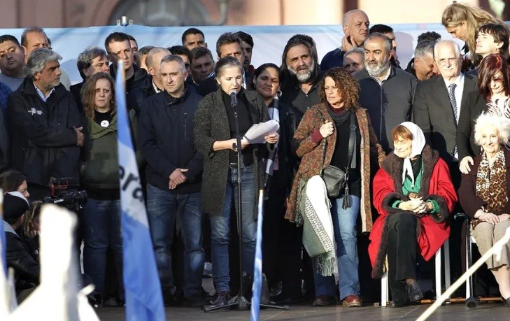Un documento, titulado “La paz social es una responsabilidad colectiva”, fue leído por la actriz y titular de la Asociación Argentina de Actores, Alejandra Darín, desde un escenario montado en la Plaza. Representantes de sectores sindicales, sociales, empresariales y de DD.HH. asistieron a la convocatoria que hizo “un llamamiento a la unidad nacional pero no a cualquier precio”