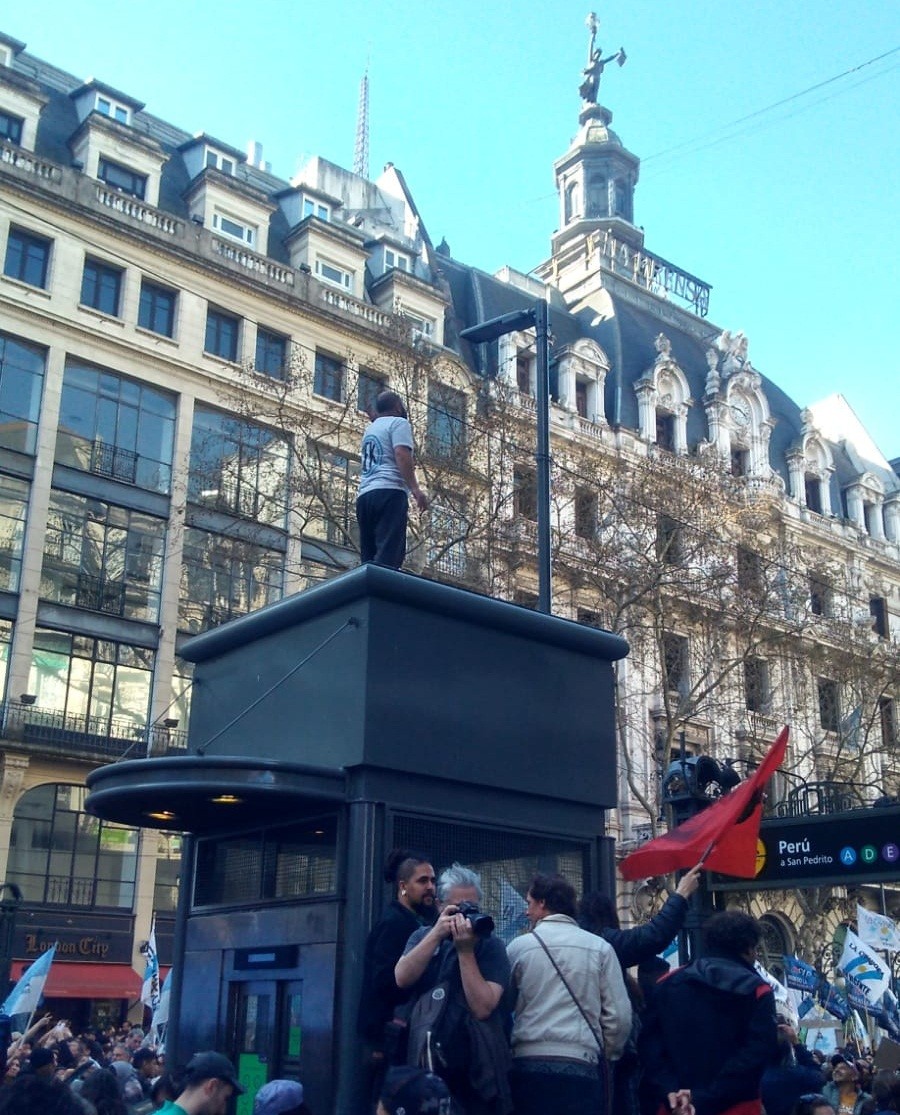 Las columnas de manifestantes colmaron la avenida de Mayo, las diagonales Sur y Norte, que desembocan en la Plaza, donde se armó un escenario frente a la Casa Rosada. La mayoría de los auto convocados llegaban con banderas argentinas y cantando consignas a favor de Cristina.