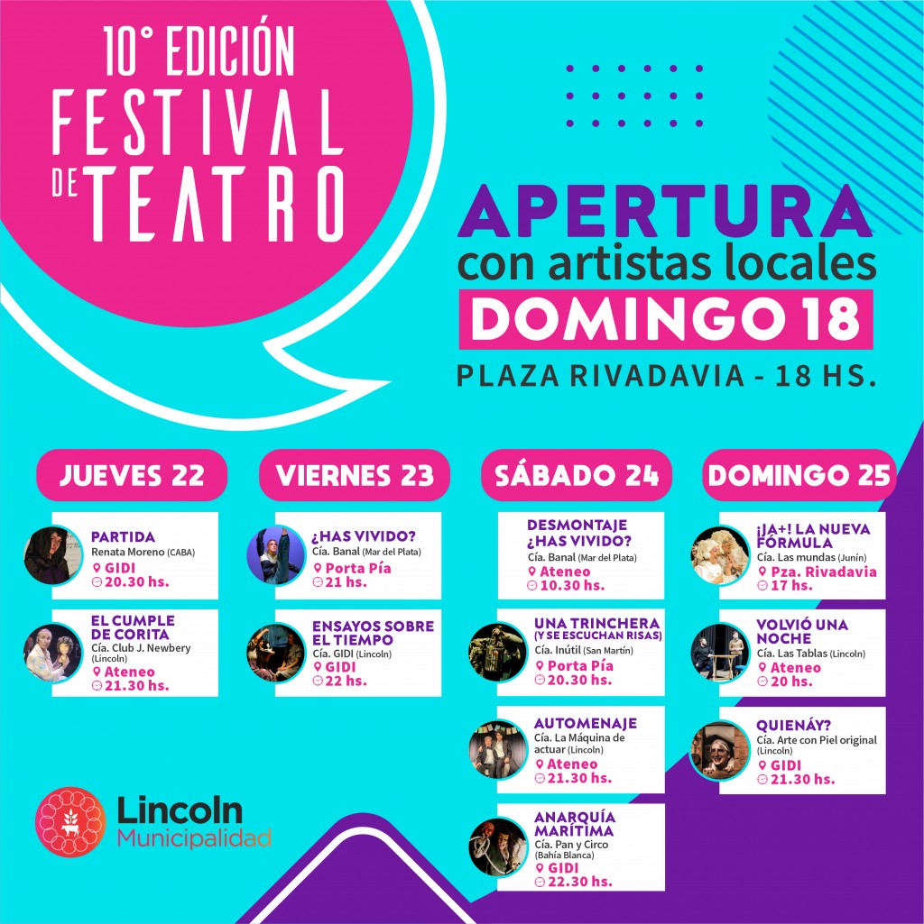 Para conocer el cronograma completo de espectáculos, ingresar a https://lincoln.gob.ar/festival-teatro