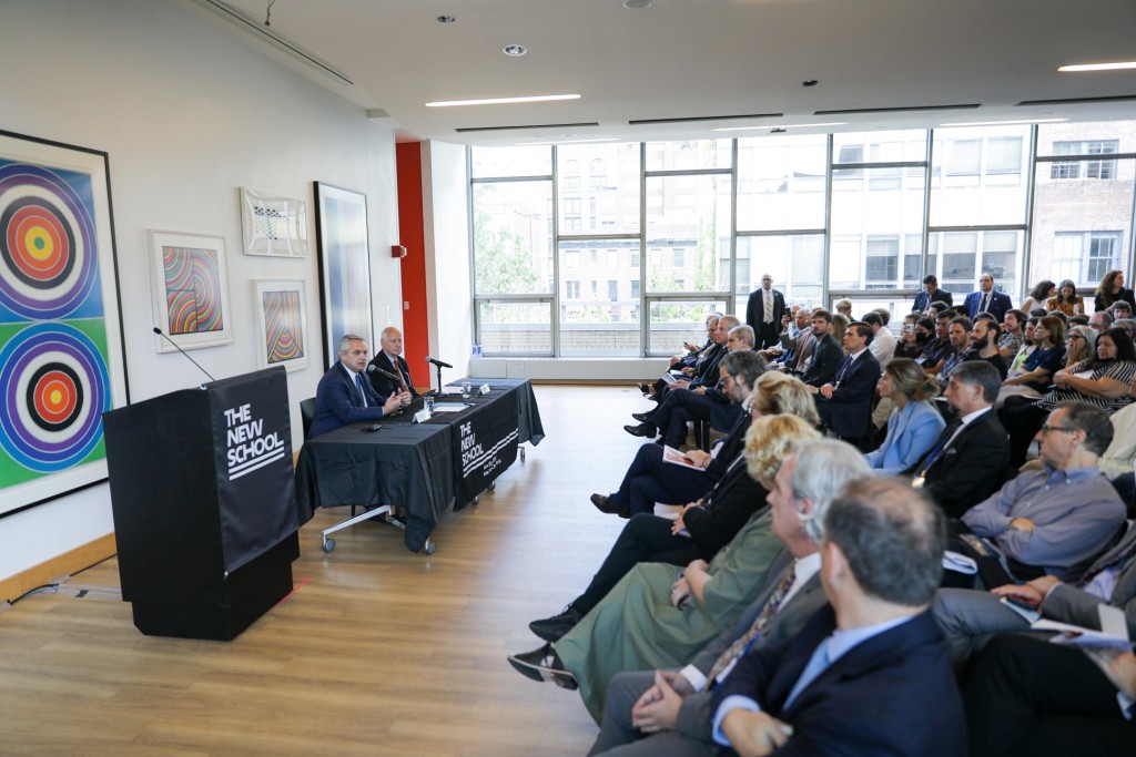 El presidente Alberto Fernández brindó una conferencia, en su calidad de titular pro tempore de la CELAC, en la Universidad The New School de Nueva York