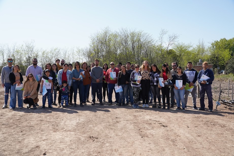 El intendente Juan Ignacio Ustarroz, presente en la entrega, expresó “hoy es un día hermoso porque se concreta con lo que la gente sueña, anhela y necesita, que es el acceso a la tierra para poder construir su techo, su vivienda”.
