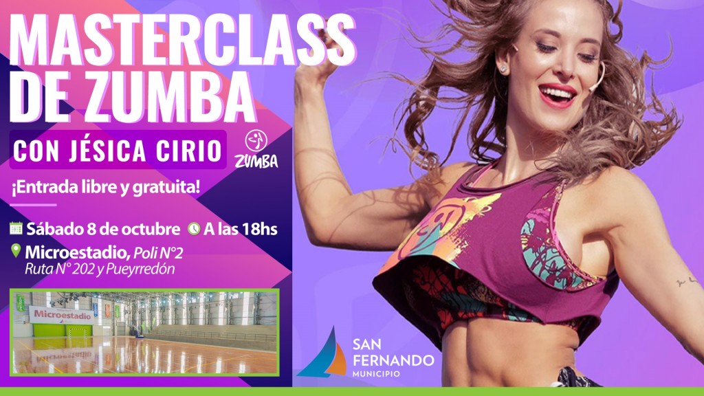 Este sábado 8 de octubre, a partir de las 18 horas están todos invitados al Polideportivo N° 2 de San Fernando, entre Ruta 202 y Pueyrredón, para divertirse bailando mientras hacen actividad física, en una espectacular clase de Zumba de la mano de la embajadora de la disciplina en la Argentina, Jésica Cirio.