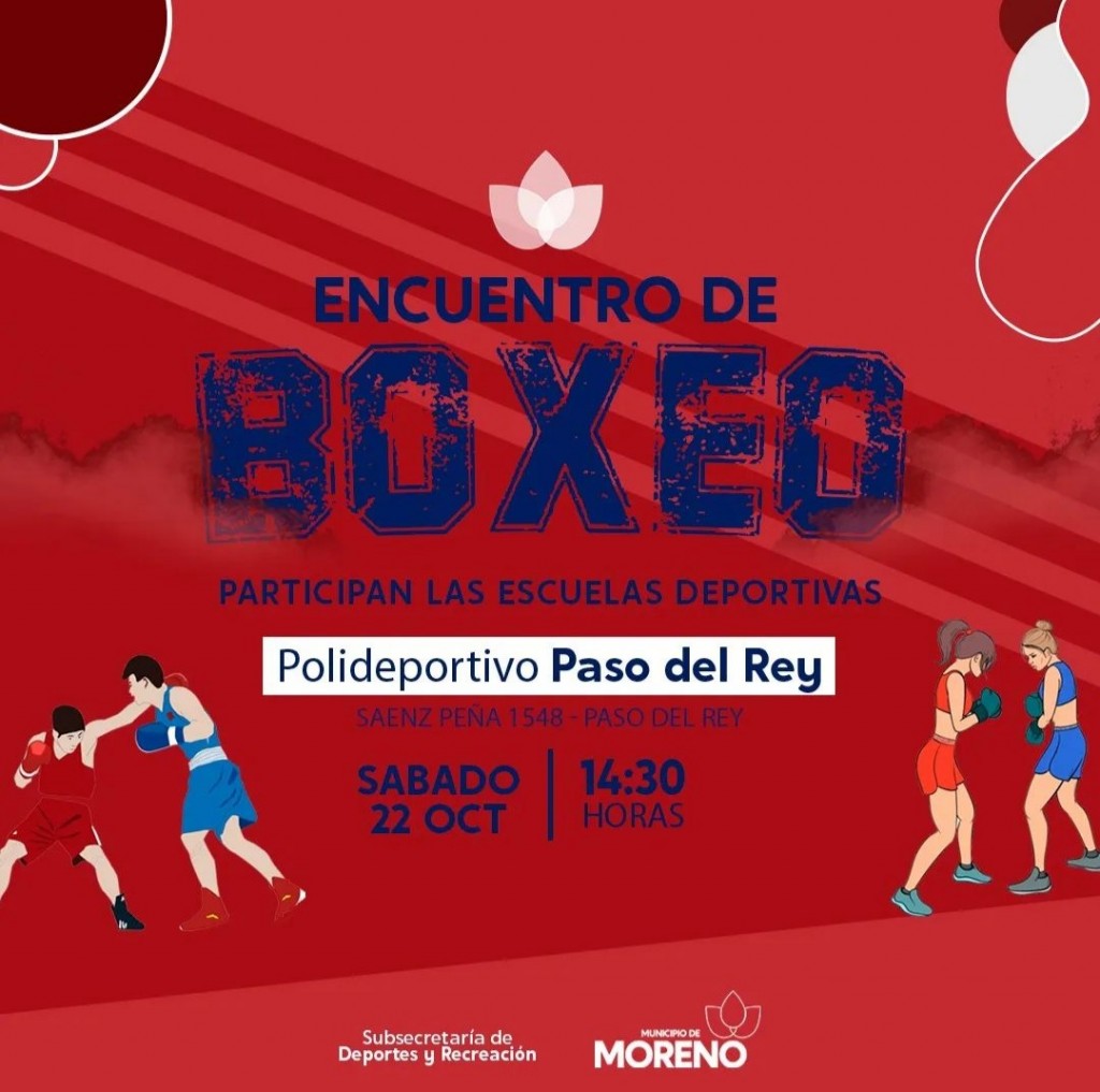 El Municipio a través de la Secretaría de Deportes y Recreación, invita a la comunidad a disfrutar de la exhibición de boxeo en el Polideportivo de Paso de Rey, este sábado 22 de octubre a partir de las 14.30 horas