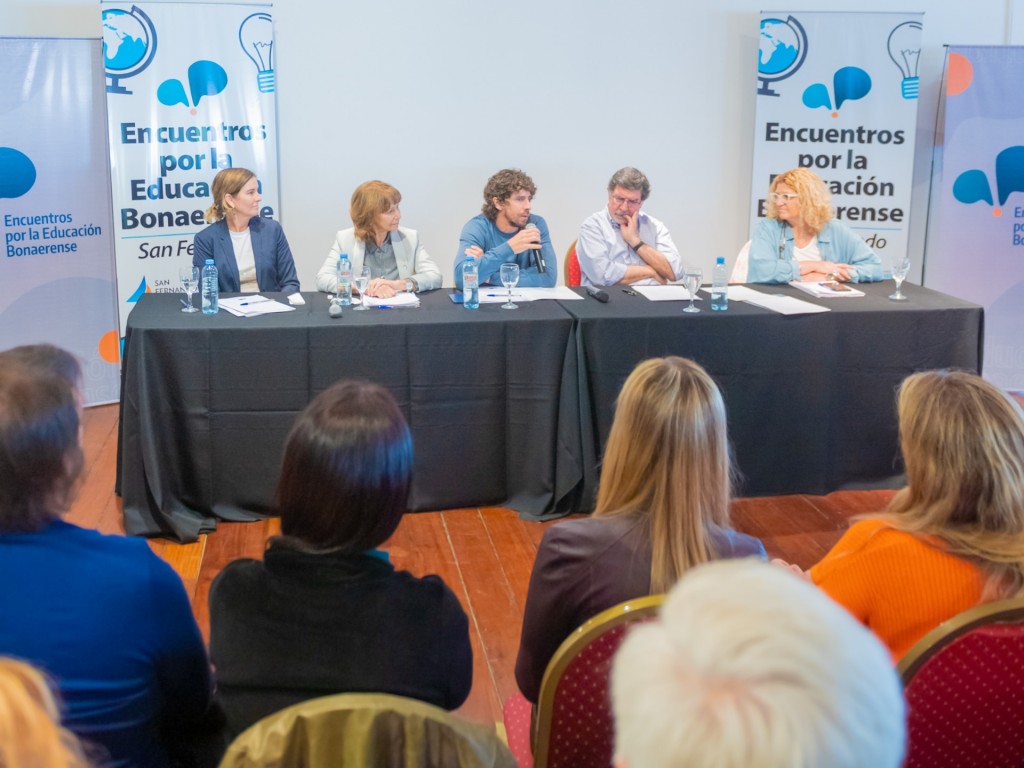 (San Fernando, 25.Oct.2022 / A1 Noticias)  La ciudad de San Fernando fue sede de ‘Encuentro por la Educación Bonaerense’, donde el Intendente Juan Andreotti acompañó al Director General de Escuelas de la Provincia, Alberto Sileoni y a la comunidad educativa en una jornada donde se debatieron temáticas centrales para optimizar la Educación Pública. Participaron la Diputada Nacional Alicia Aparicio, la Subsecretaria de Educación provincial, Claudia Bracchi, la Legisladora provincial Luciana Padulo; la Secretaria municipal Eva Andreotti, docentes, auxiliares, miembros de consejos escolares y referentes políticos y gremiales.