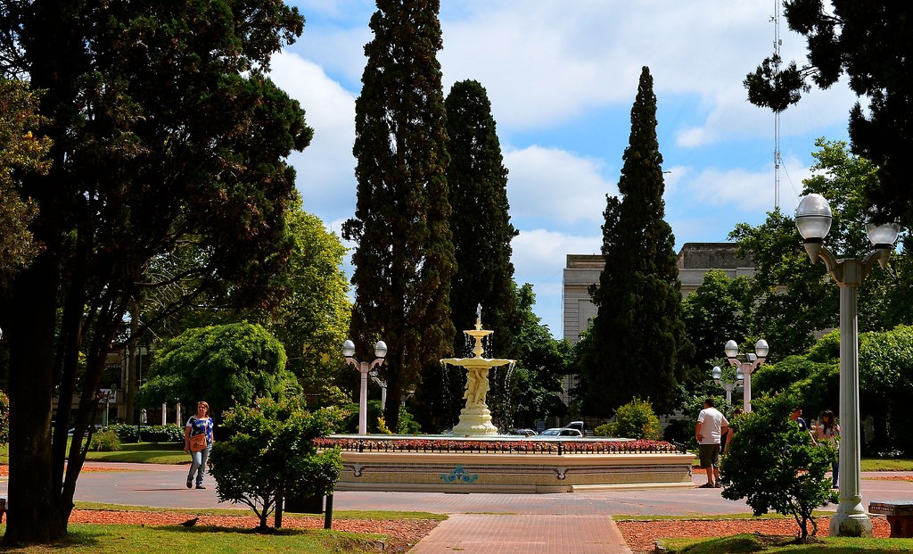 Entonces como ya había sido removido de la plaza Belgrano, se pensó en una reubicación, esa reubicación se decidió hacer en la otra plaza importante, que está al frente del municipio de Luján, que es la plaza Colón, que tiene otras características diferentes, más que nada porque es por un lado más actual y por otro lado que tiene una riqueza paisajista porque fue diseña por el arquitecto paisajista, Carlos Thays, que es exactamente el que diseño todo Palermo.