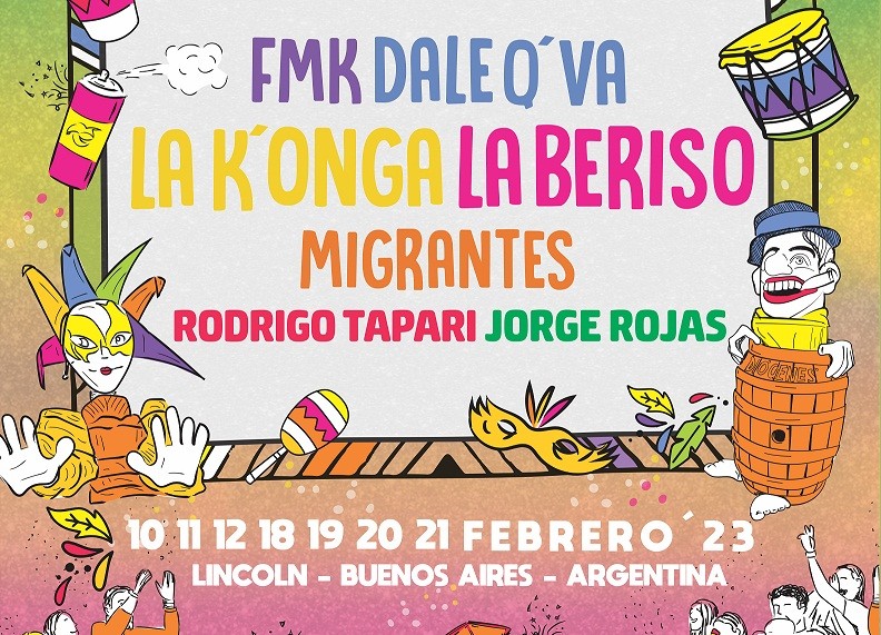 Desde la organización del Carnavalincoln confirmaron la grilla de espectáculos musicales en cada una de las 7 noches de desfile de la edición que arranca el 10 de febrero. Entre los números más esperados, se destacan la banda número uno del cuarteto cordobés, La K’onga; y por el lado del rock, La Beriso, liderada por “Rolo” Sartorio