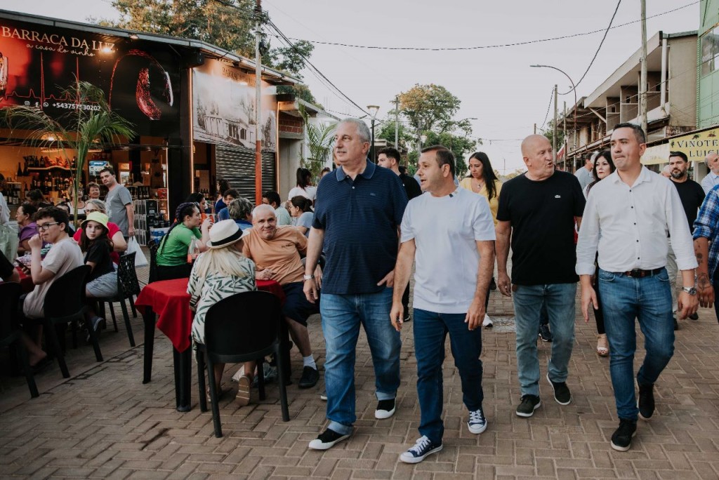 (Misiones-Puerto Iguazú, 29.Dic.2022 / A1 Noticias) El gobernador Oscar Herrera Ahuad recorrió el primer tramo habilitado de la renovada avenida Brasil en formato calle paseo. Una obra que dio amplitud a esa zona comercial y gastronómica de la ciudad, donde se construyeron nuevas veredas, iluminación, pérgolas y calzada con adoquines. Junto a los vecinos, participó en el encendido de la nueva luminaria del tramo conocido como La Feirinha y dialogó con los frentistas sobre el impacto del plan de modernización de la ciudad de las cataratas. Más tarde, visitó la cancha de la Liga Regional de Fútbol Iguazú, donde anunció la instalación del piso de parquet que estará habilitado dentro de un mes.